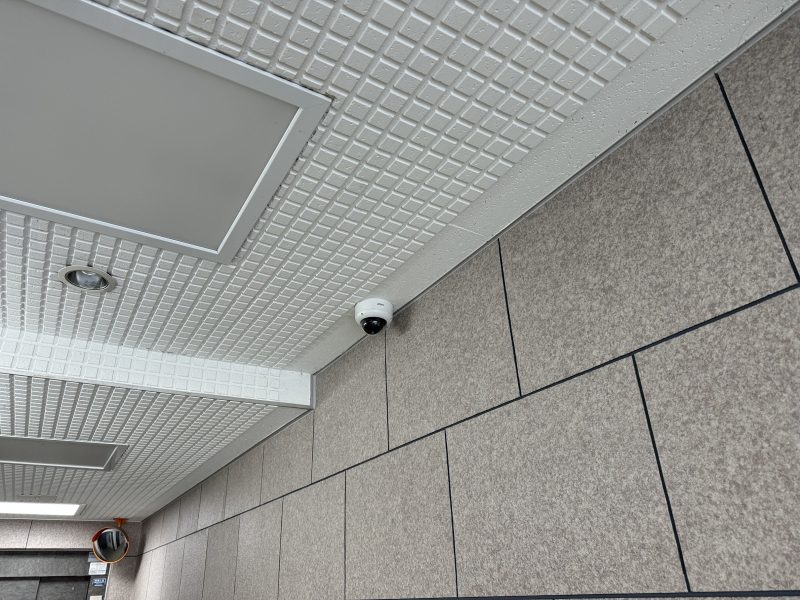 エントランスや共用通路に設置し、威圧感を抑えつつ人物の動きをしっかり記録します。