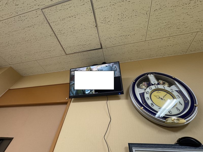 事務室内にはモニターを設置し、3台のカメラ映像を常時表示できるよう設定しました。